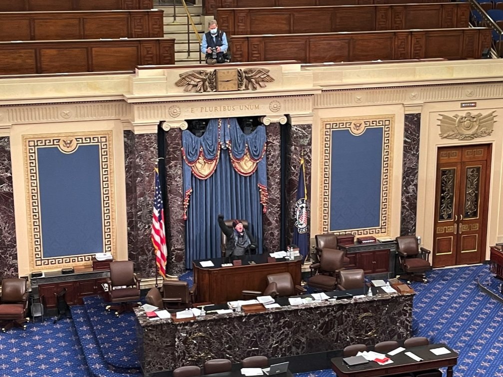 Armed stand-off in the #Senate chamber — multiple police have guns drawn, staff hiding under chairs & [unconfirmed] reports of shots fired. pic.twitter.com/XFr4Etjh6h