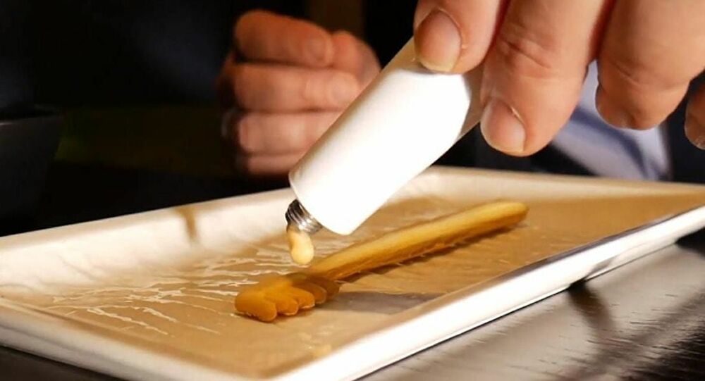 Η «οδοντόβουρτσα» είναι φτιαγμένη από ζύμη αυγού και πάνω της κανείς βάζει μια «οδοντόκρεμα» παρμεζάνας.