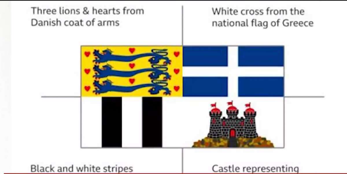 Στο άνω αριστερό τμήμα τρεις λέοντες συμβολίζουν την καταγωγή από τη Δανία, δίπλα η ελληνική σημαία, κάτω αριστερά οι άσπρες και μαύρες λωρίδες είναι το έμβλημα των Μαουντμπάτεν και κάτω δεξιά ένα κάστρο με τρεις πύργους, το σύμβολο του Εδιμβούργου.