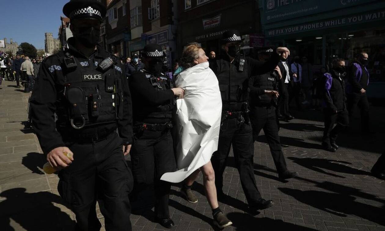 Τη στιγμή που η Μεγάλη Βρετανία θρηνεί το θάνατο του Πρίγκιπα Φίλιππου, τηρώντας μάλιστα και ενός λεπτού σιγή από άκρη σε άκρη της χώρας μια γυμνόστηθη γυναίκα αναστάτωσε το Ουίνδσορ.