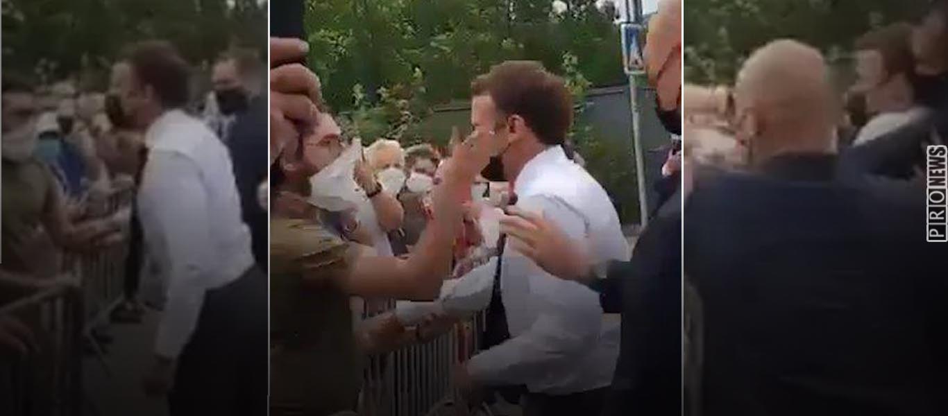 Συγκεκριμένα, κατά την επίσκεψή του στη Ντρομ, στα νοτιοανατολικά της χώρας και κατά τη διάρκεια ανταλλαγής χειραψιών με πολίτες, ένας από αυτούς, που φορούσε γυαλιά και μάσκα, χαστούκισε με δύναμη τον Μακρόν, φωνάζοντας συνθήματα κατά του Γάλλου προέδρου.