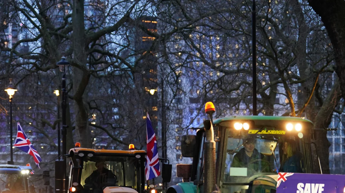 Αγρότες με τρακτέρ διαδήλωσαν απόψε έξω από το βρετανικό κοινοβούλιο, λόγω των εμπορικές συμφωνιών που έχουν δημιουργηθεί μετά το Brexit και τις εισαγωγές τροφίμων κατώτερης ποιότητας, όπως ισχυρίζονται.