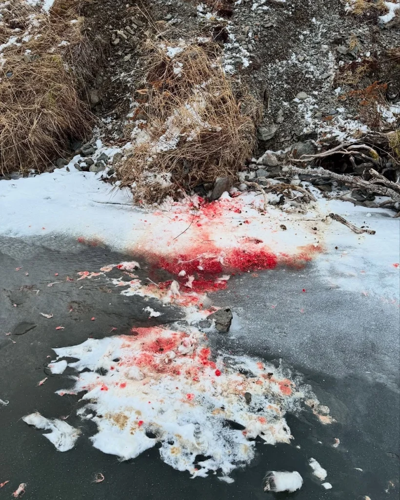 Σοκαριστικές εικόνες από χιόνι ποτισμένο με αίμα, ήρθαν στη δημοσιότητα από τη λίμνη Crescent στη χερσόνησο Kenai της Αλάσκας, προκαλώντας μια σειρά από θεωρίες σχετικά με το τι θα μπορούσε να έχει συμβεί. Ο Luca Mehl, κατά τη διάρκεια μιας μέρας πατινάζ στην παγωμένη λίμνη, ανακάλυψε το αιματηρό σκηνικό, χωρίς όμως να εντοπίσει το σώμα του ζώου, που ενδεχομένως πέθανε στο σημείο.
