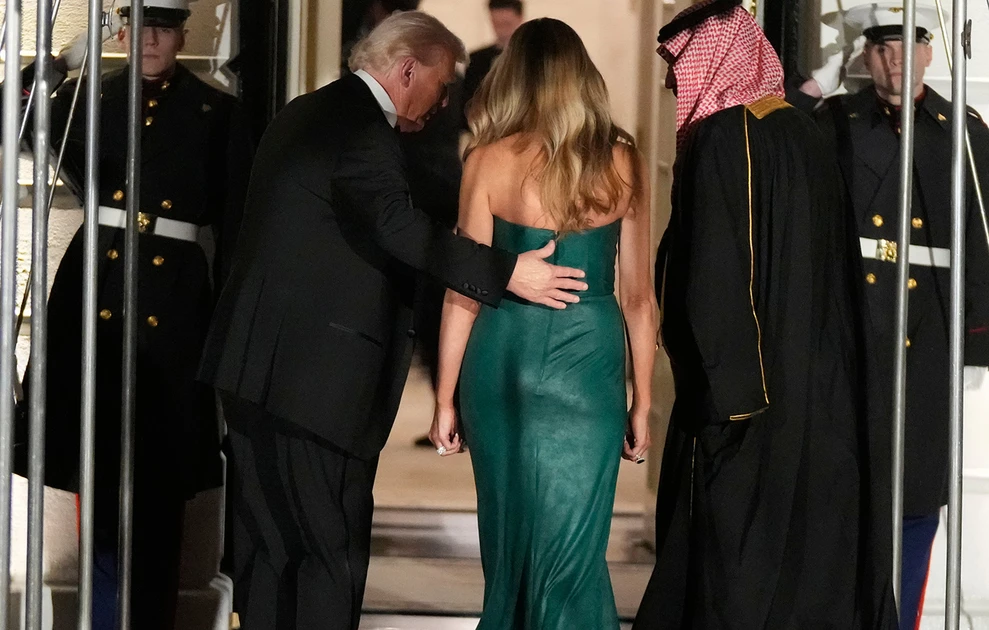 Στο επίσημο δείπνο που έγινε στην Ανατολική Αίθουσα του Λευκού Οίκου προς τιμήν του Πρίγκιπα Διαδόχου, Μοχάμεντ μπιν Σαλμάν, η Μελάνια απαθανατίστηκε να φορά ένα κομψό σμαραγδί φόρεμα.