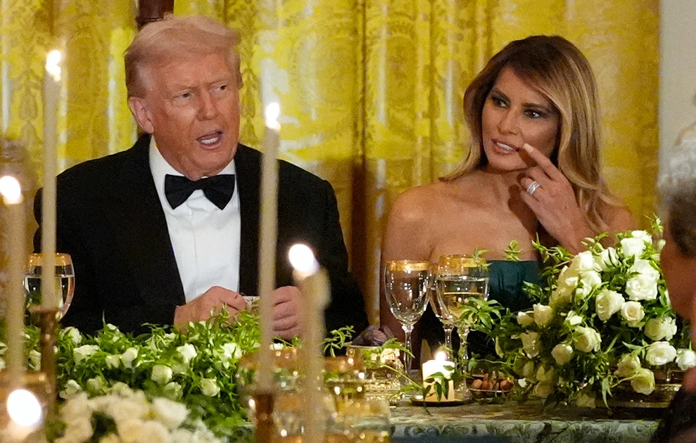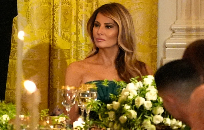 Στο επίσημο δείπνο που έγινε στην Ανατολική Αίθουσα του Λευκού Οίκου προς τιμήν του Πρίγκιπα Διαδόχου, Μοχάμεντ μπιν Σαλμάν, η Μελάνια απαθανατίστηκε να φορά ένα κομψό σμαραγδί φόρεμα.