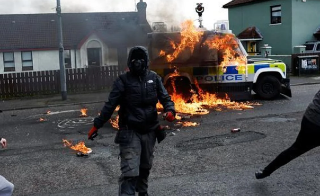 Ένας φωτορεπόρτερ του πρακτορείου Reuters είδε τέσσερις νεαρούς στην περιοχή Κρέγκαν να εκτοξεύουν βόμβες μολότοφ σε ένα όχημα της αστυνομίας, το οποίο τυλίχθηκε στις φλόγες στη μία πλευρά του. Δεν αναφέρθηκαν τραυματισμοί και οι αστυνομικές αρχές έκαναν έκκληση για ηρεμία.