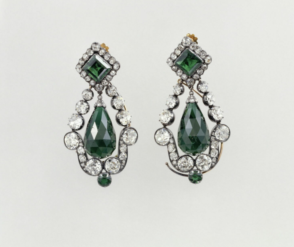 Ένα ζευγάρι σκουλαρίκια με σμαράγδια από το σετ κοσμημάτων της Μαρίας Λουίζας: