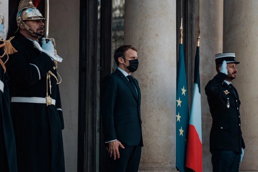 O Μακρόν αλλάζει την απόχρωση του μπλε στη γαλλική σημαία ενώ η χώρα του ετοιμάζεται να αναλάβει τον Ιανουάριο του 2022 την προεδρία της ΕΕ .
