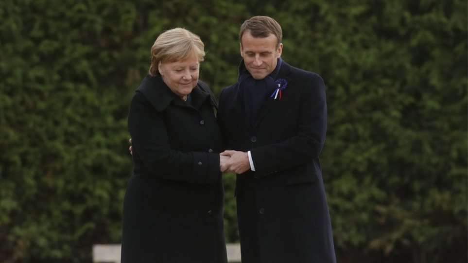 Δίπλα-δίπλα ο Γάλλος πρόεδρος Εμανουέλ Μακρόν και η Καγκελάριος Αγκελα Μέρκελ, βρέθηκαν στο ξέφωτο «Rethondes» στην Κοπιένη (Compiegne), εκεί όπου στις 11 Νοεμβρίου του 1918 υπογράφηκε η ανακωχή των εχθροπραξιών του Α’ Παγκοσμίου Πολέμου.