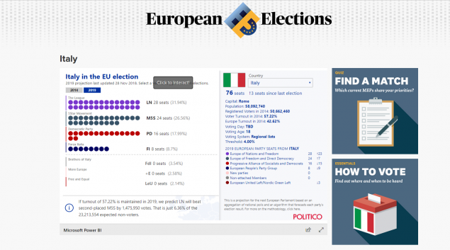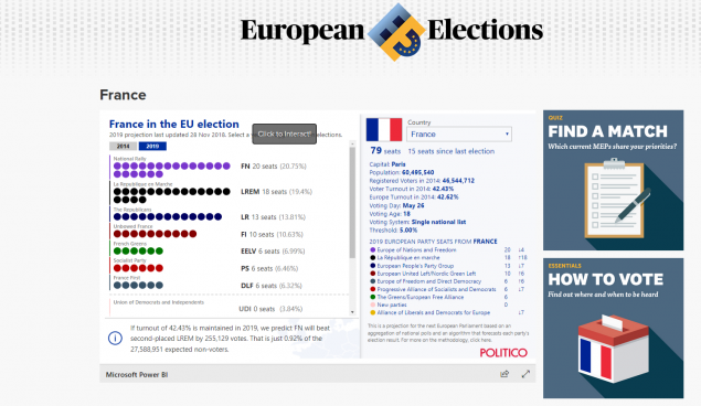 Για τη Γαλλία, τα προγνωστικά του Politico δίνουν πρώτο κόμμα το Εθνικό Μέτωπο της Μαρίν Λεπέν και δεύτερο το κυβερνών κόμμα του Εμανουέλ Μακρόν.