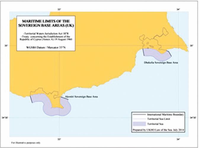 Η ίδια επισημαίνει ότι «οι βάσεις του Ηνωμένου Βασιλείου στο Ακρωτήρι και στη Δεκέλεια θεωρείται ότι είναι εδάφη του και ότι οι βάσεις 180 τετραγωνικών χιλιόμετρων έχουν τη δική τους υφαλοκρηπίδα».