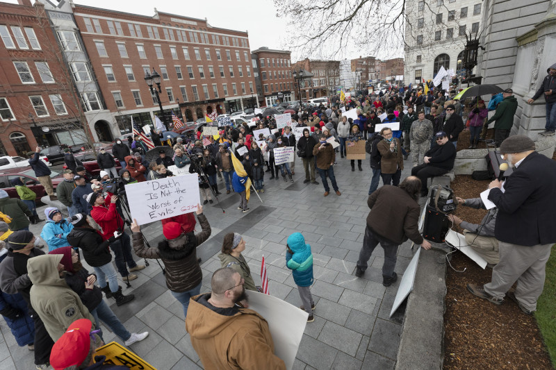 Εκατοντάδες άνθρωποι διαδήλωσαν σήμερα μπροστά από το κοινοβούλιο της πολιτείας του Νιου Χαμσάιρ στις ΗΠΑ για να καταγγείλουν τα μέτρα καραντίνας μπροστά στον κορωνοϊό, τα οποία θεωρούν υπερβολικά δεδομένου του σχετικά μικρού αριθμού κρουσμάτων που έχει καταγραφεί εκεί.