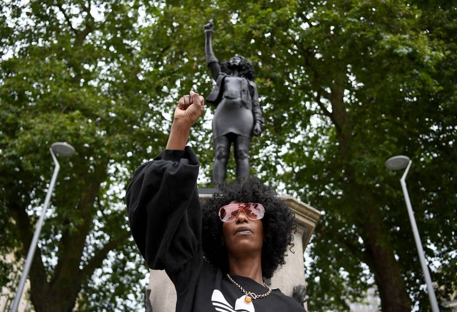 Το μνημείο του ευεργέτη του Μπρίστολ,Έντουαρντ Κόλστον, αφού αποκαθηλώθηκε βίαια πριν από 1 μήνα από μαύρους ακροαριστερούς διαδηλωτές και πετάχτηκε στο λιμάνι, αντικαταστάθηκε από αυτό μίας μαύρης ακροαριστερή διαδηλώτριας, η οποία συμμετείχε στις κινητοποιήσεις για την καταστροφή του αγάλματος!
