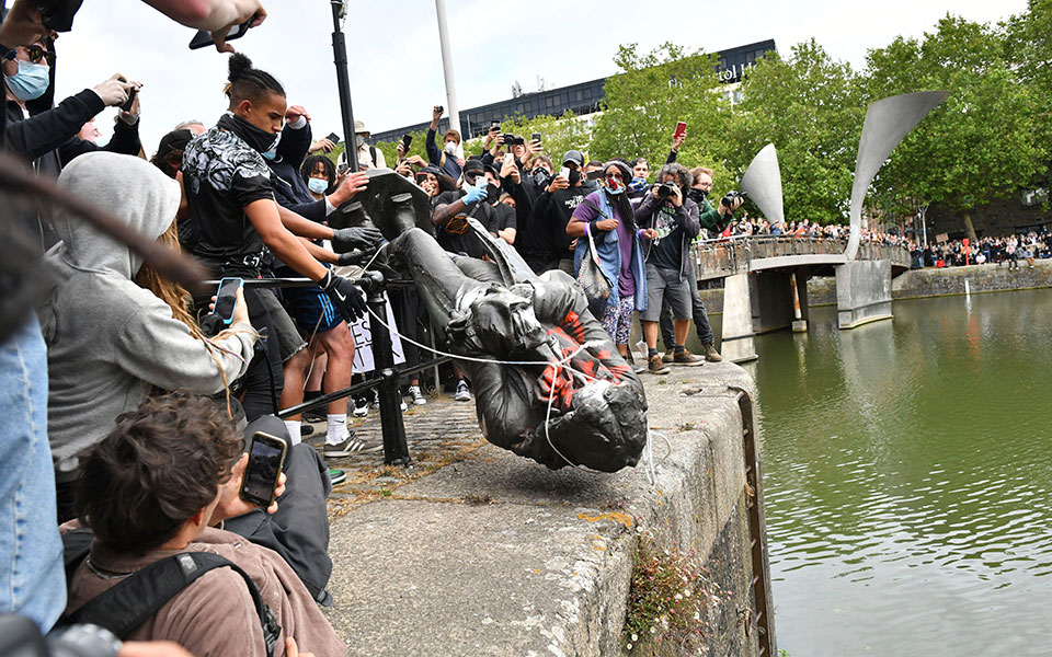 Το μνημείο του ευεργέτη του Μπρίστολ,Έντουαρντ Κόλστον, αφού αποκαθηλώθηκε βίαια πριν από 1 μήνα από μαύρους ακροαριστερούς διαδηλωτές και πετάχτηκε στο λιμάνι, αντικαταστάθηκε από αυτό μίας μαύρης ακροαριστερή διαδηλώτριας, η οποία συμμετείχε στις κινητοποιήσεις για την καταστροφή του αγάλματος!