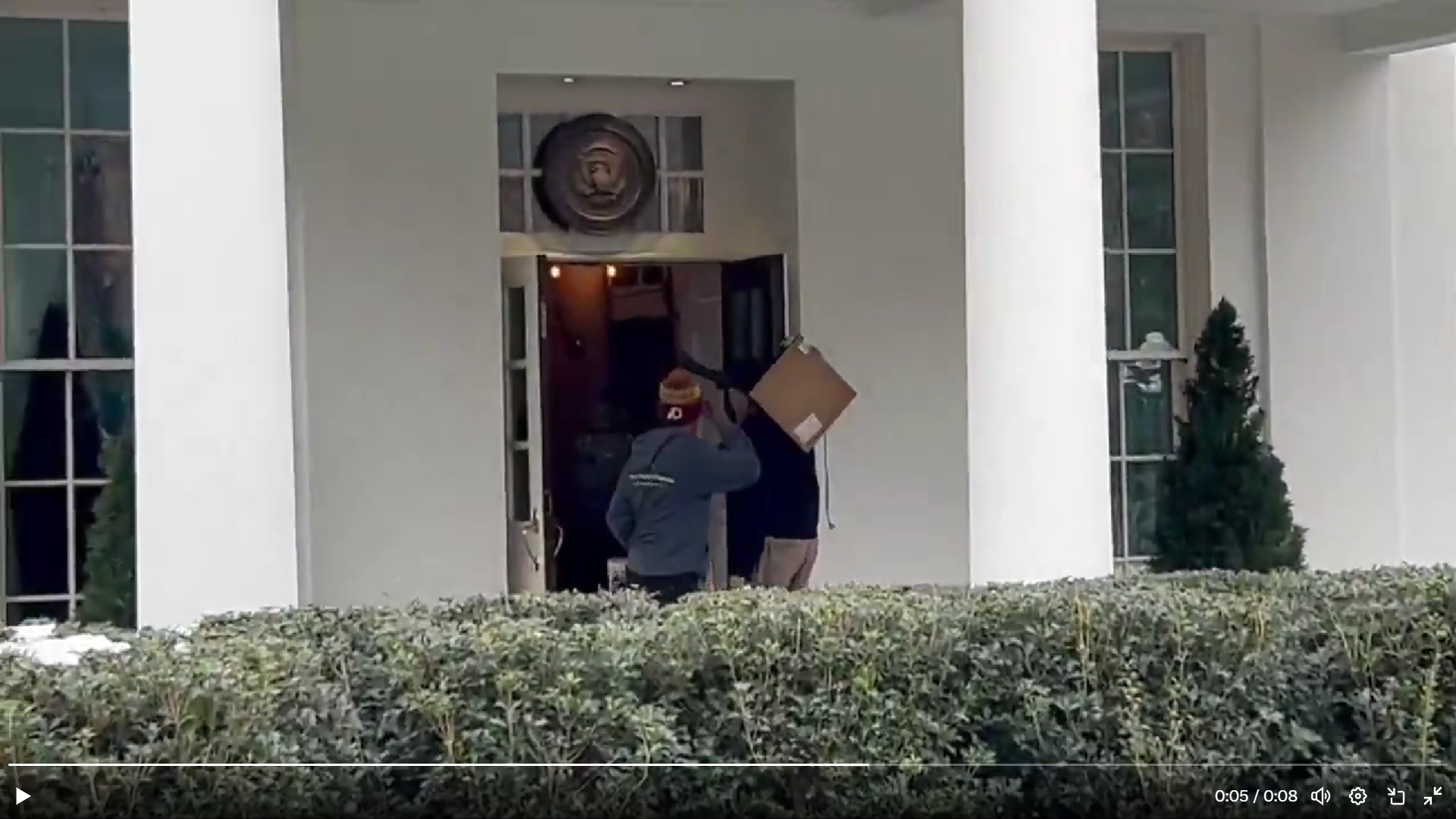 Ξεκίνησε η μετακόμιση του Τ.Μπάιντεν από τον Λευκό Οίκο με πλάνα να δείχνουν υπαλλήλους να μεταφέρουν αντικείμενα του Τ.Μπάιντεν από την προεδρική κατοικία στον σπίτι του.