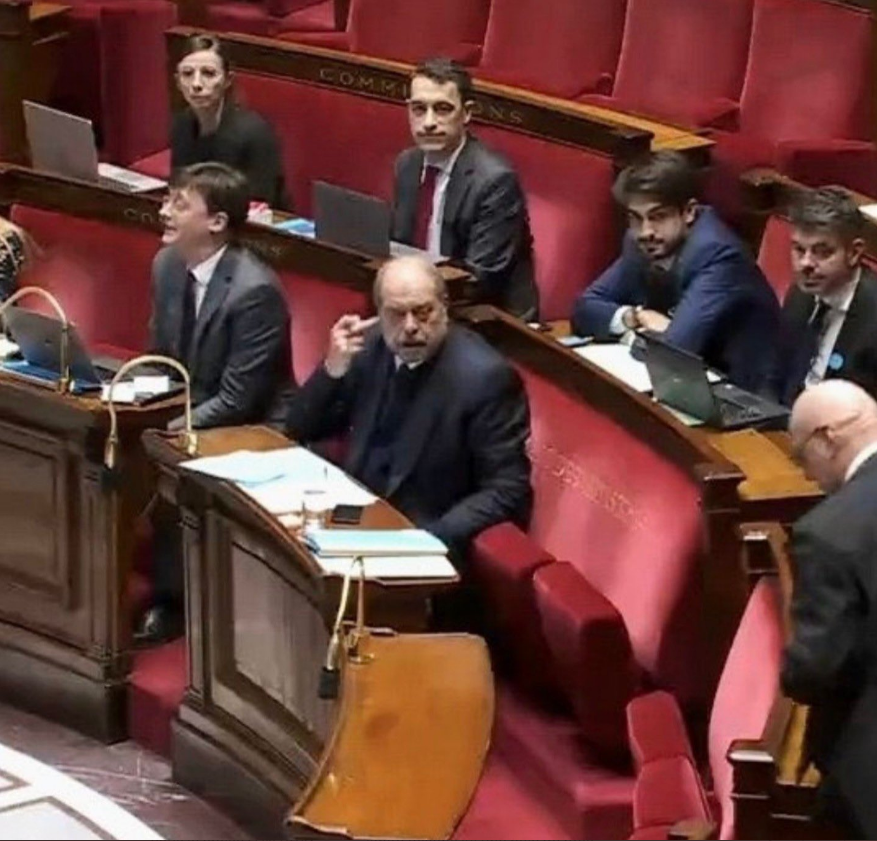 «Άναψαν τα αίματα» στη Εθνοσυνέλευση της Γαλλίας και η συζήτηση διακόπηκε όταν ο υπουργός Δικαιοσύνης έκανε μια άσεμνη χειρονομία στον επικεφαλής της δεξιάς παράταξης, όταν εκείνος υπενθύμισε τις περιπέτειές του με τον νόμο.