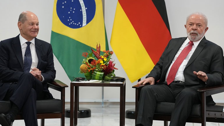 «Η Βραζιλία δεν ενδιαφέρεται να στείλει πυρομαχικά για να χρησιμοποιηθούν στον πόλεμο μεταξύ της Ουκρανίας και της Ρωσίας», ξεκαθάρισε ο Λούλα κατά τη διάρκεια κοινής συνέντευξης Τύπου με τον κ. Σολτς, που έφθασε στη Βραζιλία —τον τελευταίο σταθμό της περιοδείας του στη Λατινική Αμερική— προχθές Κυριακή.