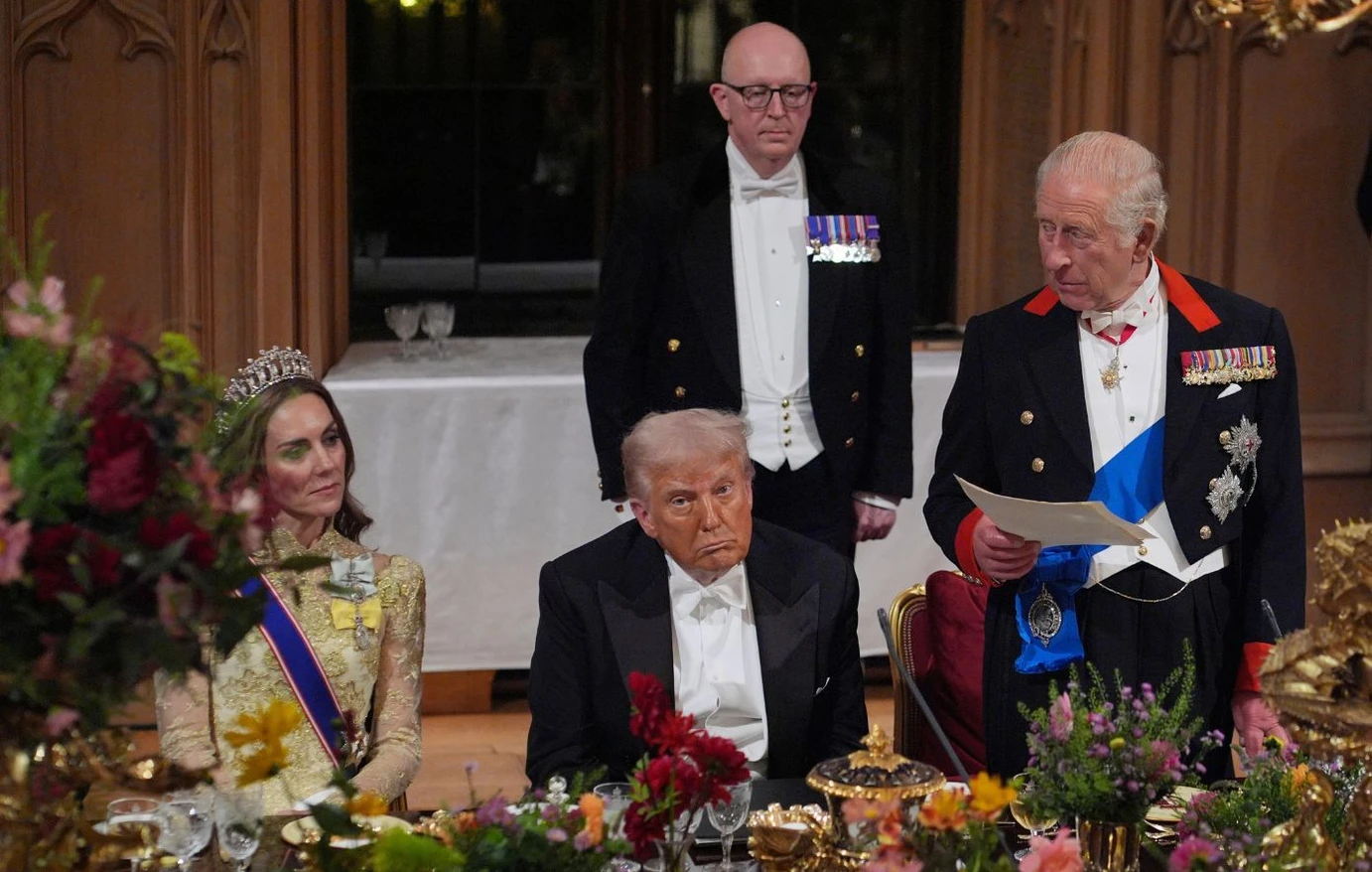 Η πριγκίπισσα της Ουαλίας επέλεξε ένα χρυσό φόρεμα υψηλής ραπτικής της βρετανίδας σχεδιάστριας Phillipa Lepley, για το επίσημο βασιλικό δείπνο προς τιμήν του Ντόναλντ Τραμπ.