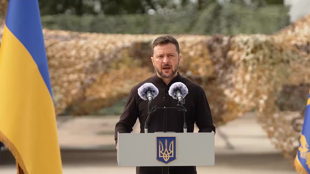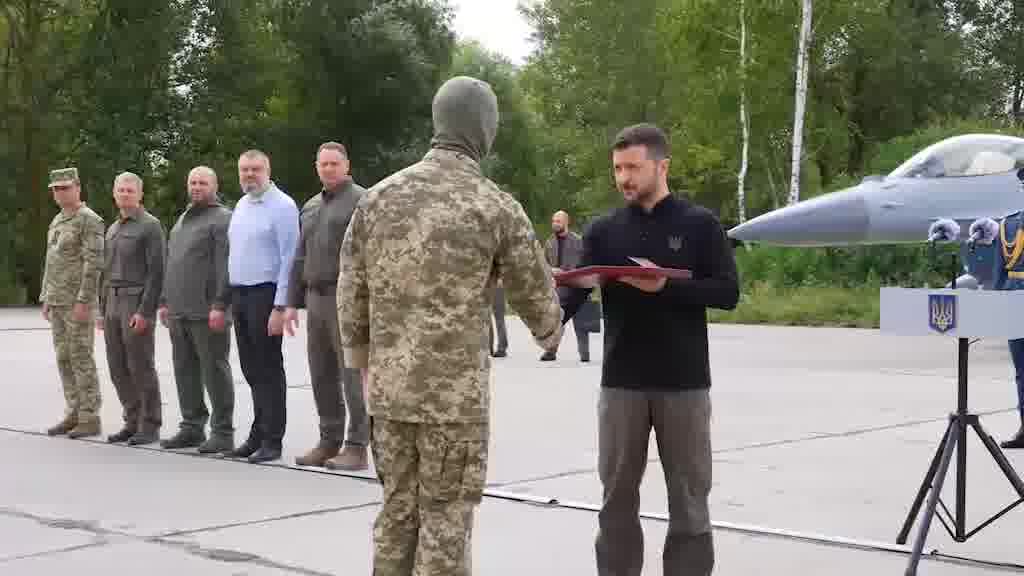 «F-16 στην Ουκρανία. Τα καταφέραμε», είπε ο πρόεδρος της Ουκρανίας Βολοντίμιρ Ζελένσκι σε μια τελετή σε μυστική τοποθεσία, πλαισιωμένη από τα τζετ.