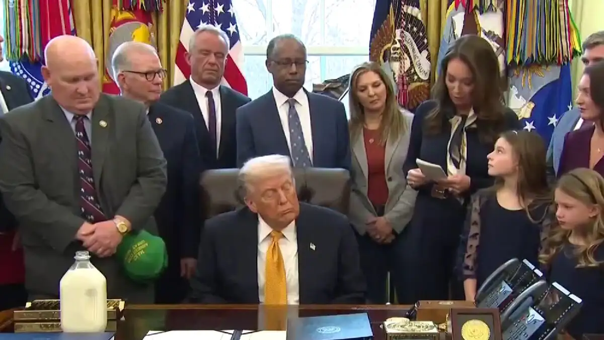Ο Ν.Τραμπ βρέθηκε στον Λευκό Οίκο για να υπογράψει τον Νόμο «Πλήρες Γάλα για Υγιή Παιδιά», ο οποίος επιτρέπει στα σχολεία του Εθνικού Προγράμματος Σχολικών Γευμάτων να σερβίρουν πλήρες γάλα παράλληλα με τις επιλογές άπαχου και χαμηλών λιπαρών που είναι στάνταρ από το 2012.
