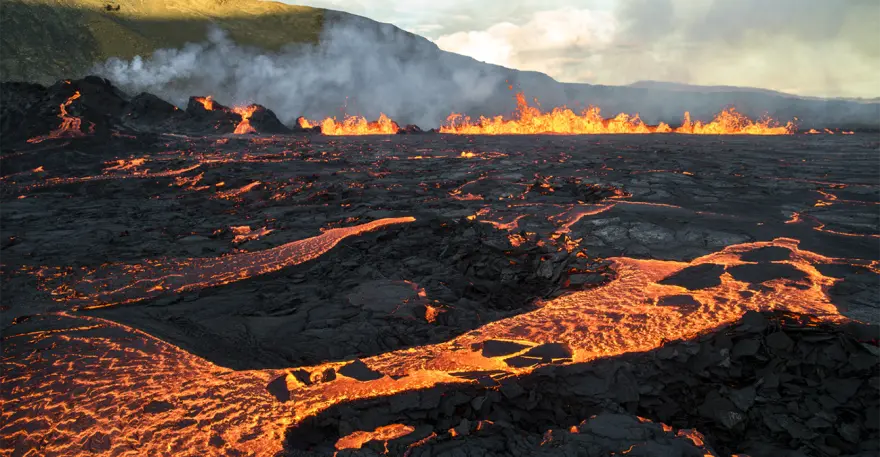 Η ρωγμή στο έδαφος, από την οποία βγαίνει η λάβα, βρίσκεται σχεδόν 40 χιλιόμετρα από το Ρέικιαβικ, κοντά στην τοποθεσία του όρους Φάγκρανταλσφιαλ, όπου ένα ηφαίστειο είχε εκραγεί το 2021.