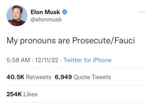 Ο Έλον Μασκ θεωρεί πως ο Άντονι Φάουτσι και η κυβέρνηση Μπάιντεν παραβίασαν θεμελιώδη ανθρώπινα δικαιώματα όπως το να επιλέγει κανείς αν θα γίνουν ιατρικές πράξεις στο σώμα του.