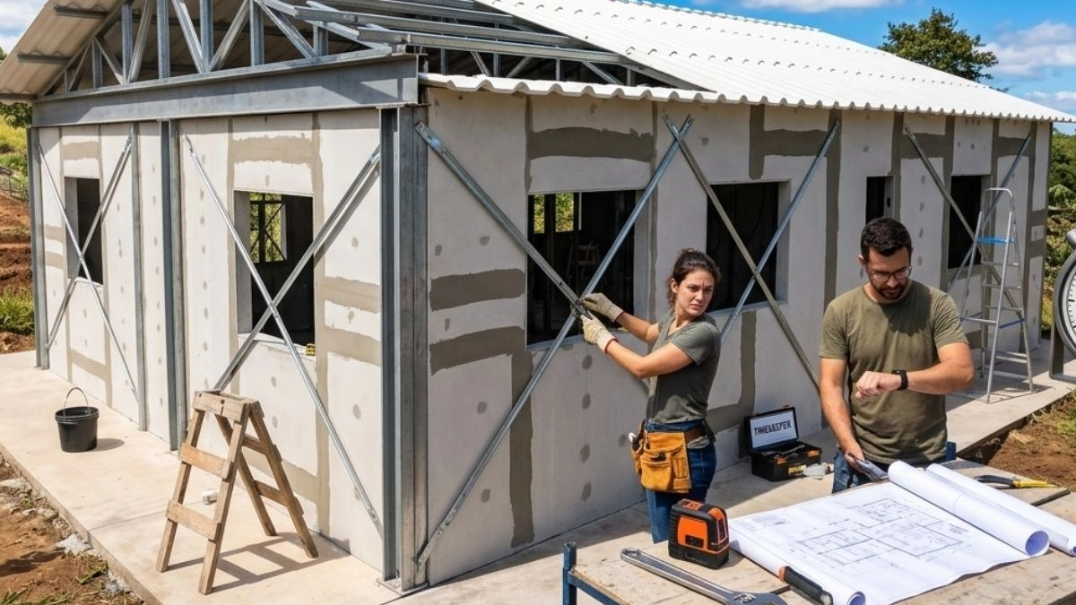 Για τον λόγο αυτό στράφηκαν στη μέθοδο steel frame, δηλαδή σε μια μορφή ξηράς δόμησης με μεταλλικό σκελετό, η οποία επιτρέπει ταχύτερη πρόοδο σε σχέση με τις παραδοσιακές κατασκευές, αλλά απαιτεί υψηλή ακρίβεια σε κάθε στάδιο. Η βασική αρχή της είναι ότι όλα τα επιμέρους στοιχεία πρέπει να λειτουργούν ως ένα ενιαίο σύστημα· αν οι συνδέσεις και οι ενισχύσεις δεν γίνουν σωστά, η κατασκευή δεν αποκτά την απαιτούμενη σταθερότητα.