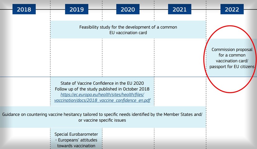Μεταξύ 2019 και 2021, η Επιτροπή σχεδίαζε να πραγματοποιήσει μια μελέτη σκοπιμότητας για τη μέτρηση της δυνατότητας εισαγωγής ενός «κοινού διαβατηρίου εμβολίων».