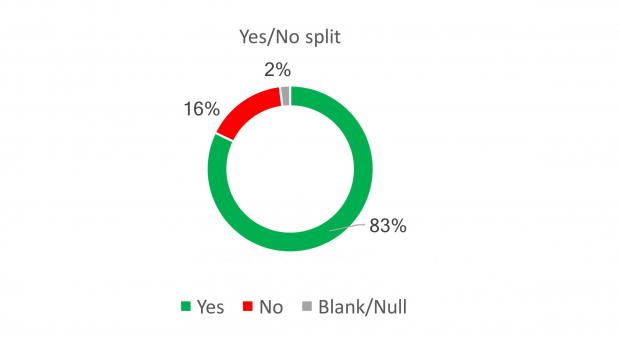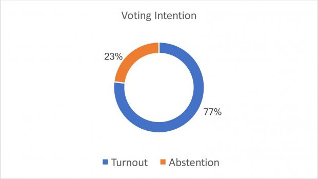 Τα ποσοστά της συμμετοχής και της αποχής. Το 77% θα πήγαινε να ψηφίσει ενώ το 23% θα απειχε.