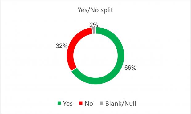 Πιο συγκεκριμένα η συμμετοχή εκτιμάται στο 77% και η αποχή στο 23%. Από αυτούς που θα ψήφιζαν το 66% θα έλεγε «ναι» στην ανεξαρτησία και το 23%»όχι».