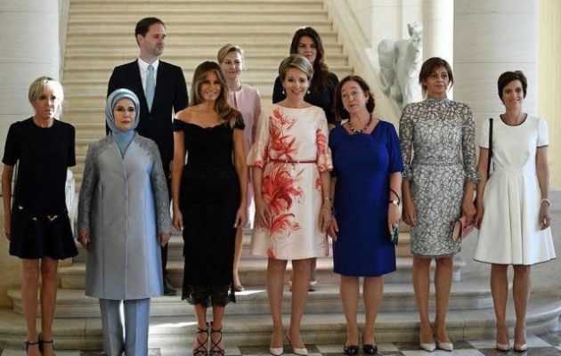 Ο κ. Ντεστενάι στάθηκε πίσω από την Μελάνια Τραμπ και μία όχι και τόσο ευχαριστημένη Εμινέ Ερντογάν.