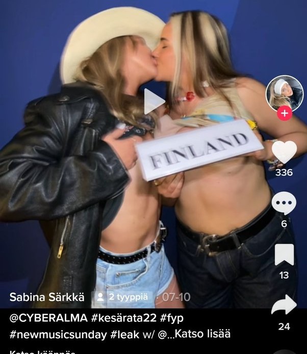 Αυτή την εβδομάδα, μια άλλη φωτογραφία άρχισε να κυκλοφορεί στα μέσα κοινωνικής δικτύωσης, που δείχνει δύο γνωστές γυναίκες ινφλουένσερ να φιλιούνται, καλύπτοντας τα γυμνά στήθη τους με την ένδειξη «Φινλανδία» («Finland»), από την επίσημη κατοικία της πρωθυπουργού στο Ελσίνκι.
