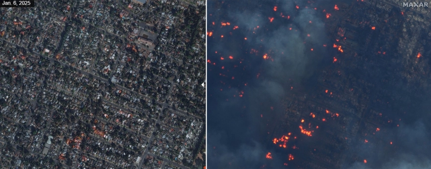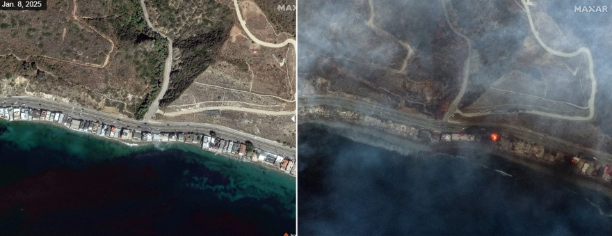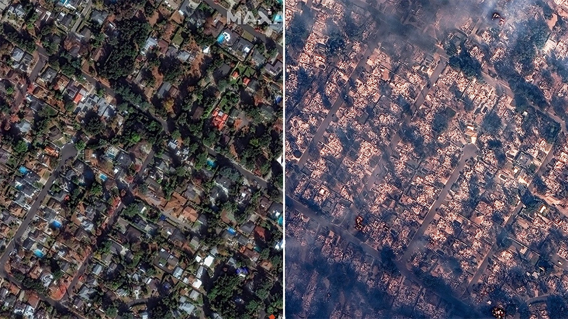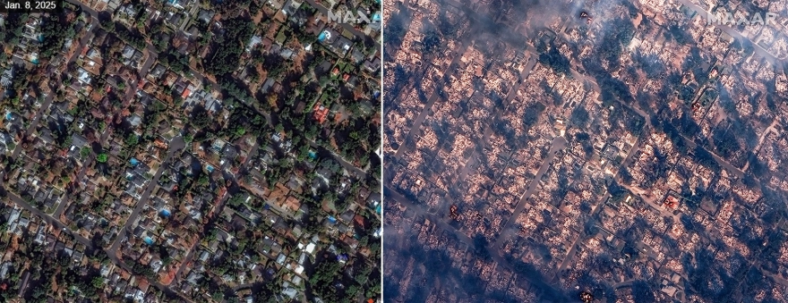 Έχουν περάσει τρεις ημέρες από τη στιγμή που ξέσπασαν τα πρώτα μέτωπα και οι δορυφορικές φωτογραφίες της Maxar δείχνουν γλαφυρά πώς ολόκληρες συνοικίες -κάποιες μάλιστα με εξαιρετικά ακριβά σπίτια- έχουν γίνει στάχτη και μάλιστα μέσα σε λίγες ώρες.