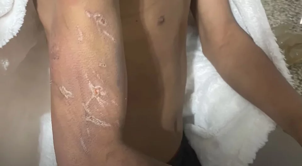 Οι γιατροί διαπίστωσαν ότι ήταν πιθανότατα αποτέλεσμα εγκαυμάτων από καυτό νερό. Το αγόρι είχε επίσης μώλωπες στον κορμό, την πλάτη, το ισχίο και τους γλουτούς του.