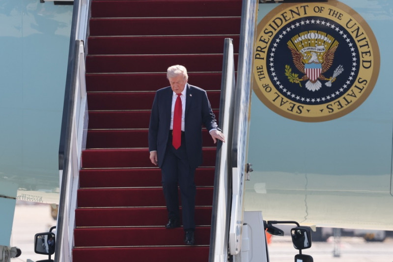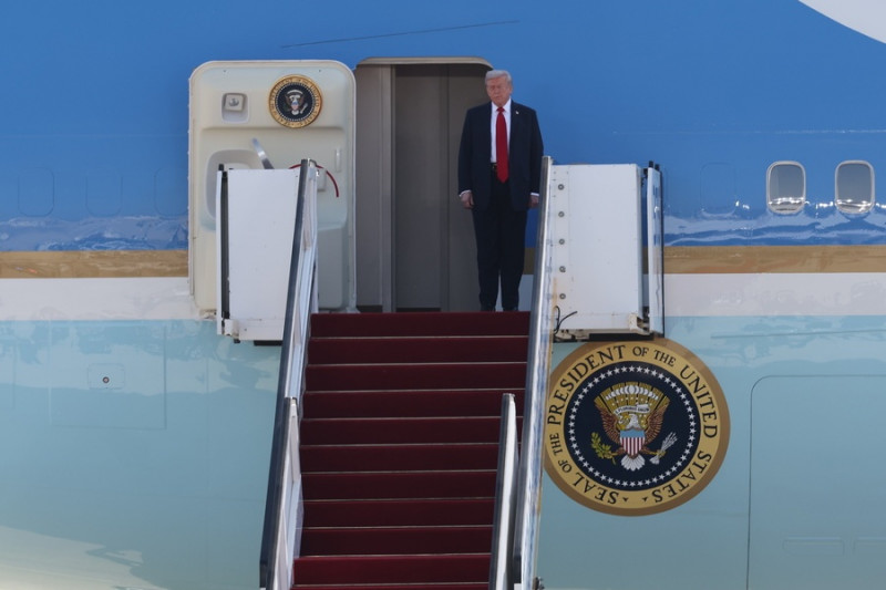 Με ιδιαίτερη φόρτιση απαθανατίστηκε η στιγμή που ο Αμερικανός πρόεδρος Ν.Τραμπ κατέβηκε την σκάλα του Air Force One στο Ισραήλ με υψωμένη την γροθιά.