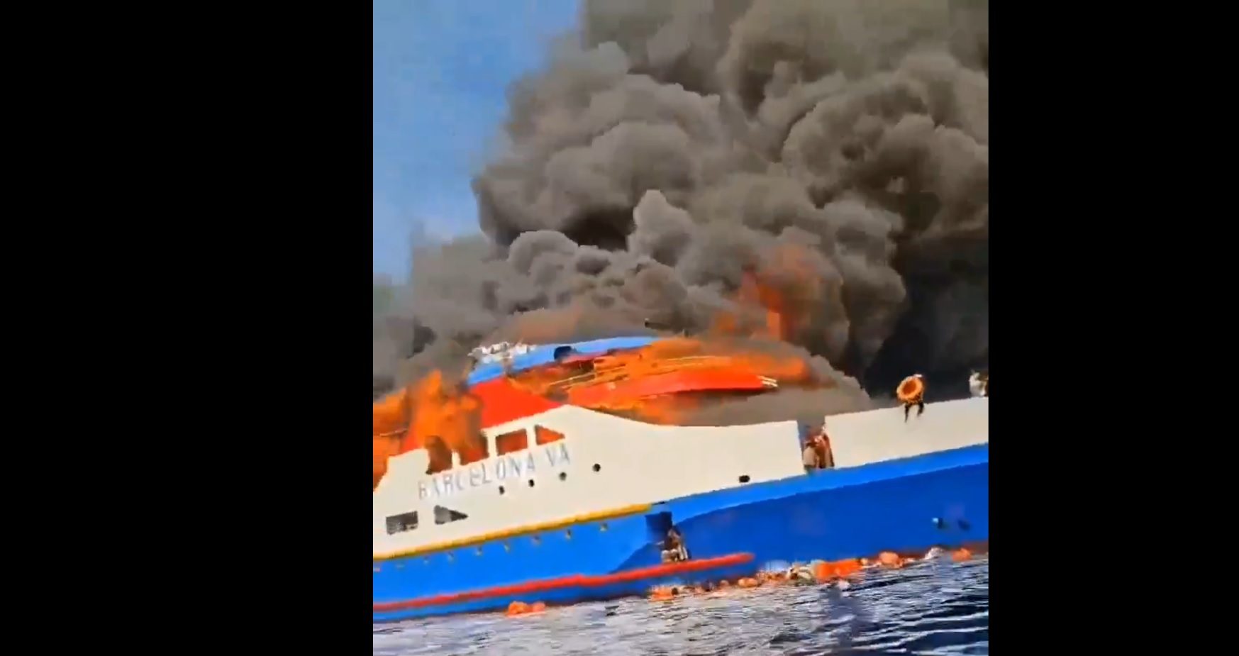 Σοκαριστικά βίντεο που κατέγραψαν επιβάτες δείχνουν ανθρώπους να φορούν πορτοκαλί σωσίβια και να βουτούν στο νερό, ενώ πίσω τους το πλοίο τυλίγεται στις φλόγες. Οι κραυγές και οι αγωνιώδεις φωνές για βοήθεια, σε συνδυασμό με τον αποπνικτικό καπνό, αποτυπώνουν το μέγεθος του τρόμου που επικράτησε.