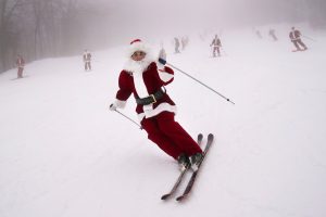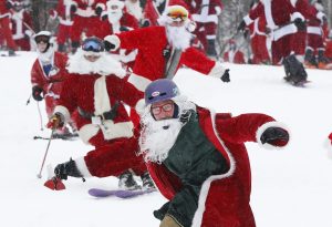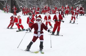 Φορώντας την κόκκινη στολή τους, περίπου 300 Άγιοι Βασίληδες όργωσαν τις πίστες του χιονοδρομικού κέντρου Sunday River στο δυτικό Μέιν των ΗΠΑ, επιδεικνύοντας τις ικανότητές τους στο σκι.
