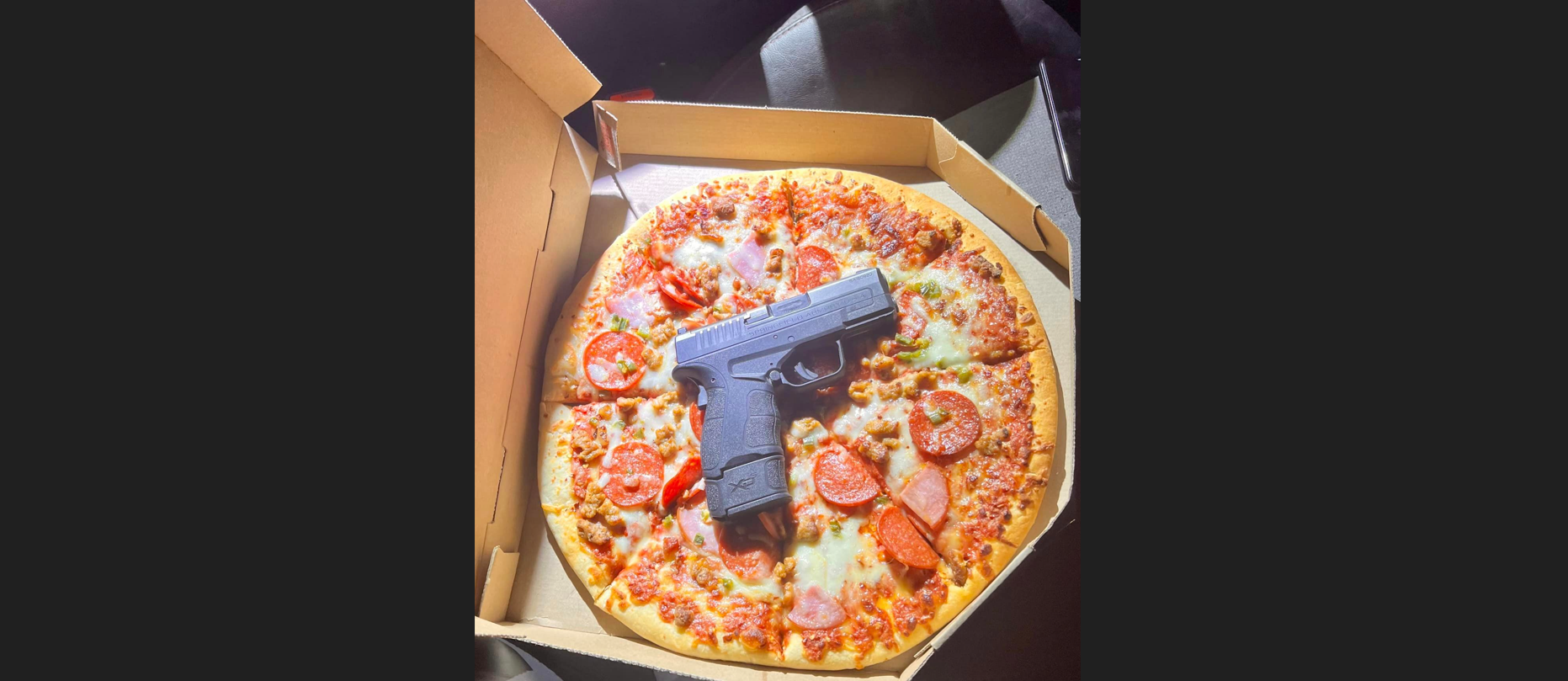 Τότε, οι αστυνομικοί σταμάτησαν το αμάξι του 47χρονου Danny Carson, που βρίσκεται σε κοινοτική επίβλεψη, επειδή έχει παραβιάσει νομοθεσίες που αφορούν την οπλοκατοχή. «Οι αστυνομικοί εντόπισαν ένα πριονισμένο κυνηγετικό όπλο και δύο γεμάτα πιστόλια, το ένα από τα οποία ήταν κρυμμένο σε ένα κουτί πίτσας πάνω από την πίτσα», ανέφερε το γραφείο του σερίφη.