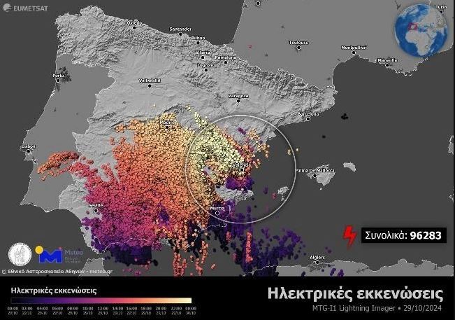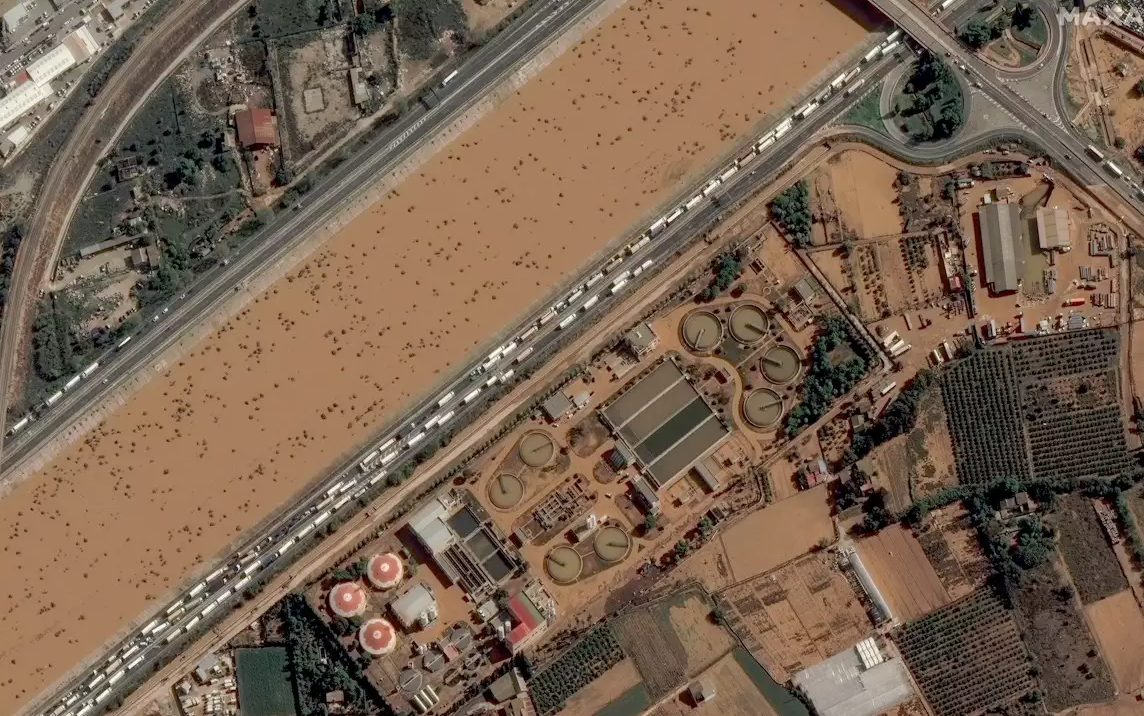 Την ίδια στιγμή συγκλονίζουν οι δορυφορικές εικόνες που δίνει στη δημοσιότητα η Maxar Technologies, οι οποίες αποτυπώνουν το μέγεθος της καταστροφής στη Βαλένθια, ενώ εντυπωσιακά είναι και τα στοιχεία που συγκέντρωσε το Εθνικό Αστεροσκοπείο Αθηνών/meteo.gr.