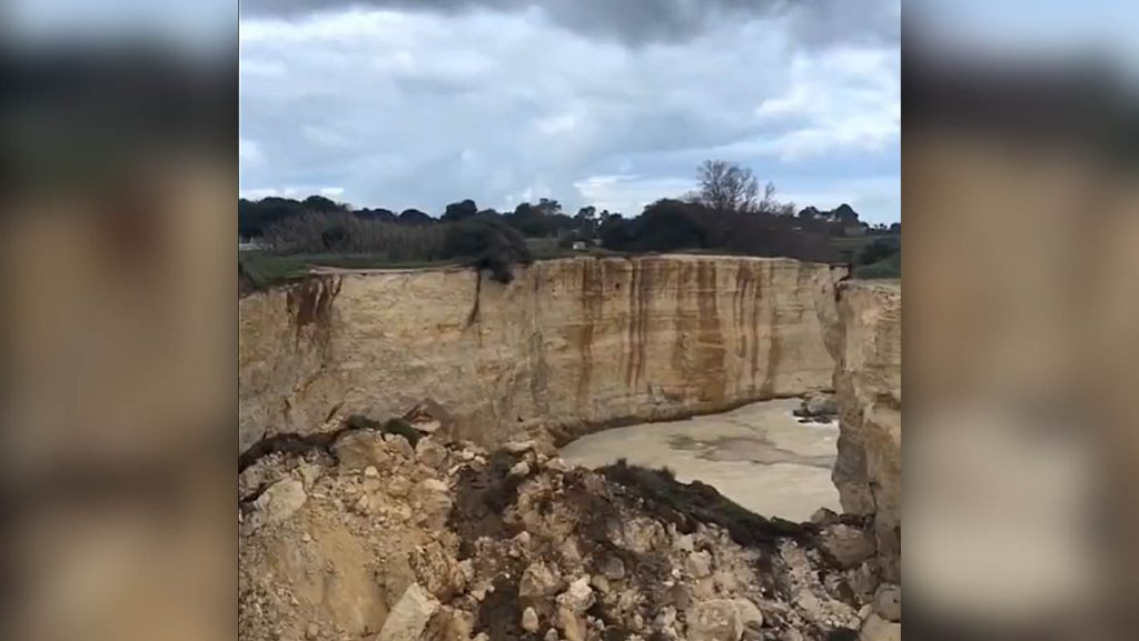 Η εκπληκτική φυσική αψίδα των βράχων στο Σαντ’ Αντρέα του Melendugno στην Απουλία, γνωστή ως «αψίδα των ερωτευμένων», κατέρρευσε την ημέρα του Αγίου Βαλεντίνου, εξαιτίας των θαλασσοταραχών και των σφοδρών βροχοπτώσεων που έπληξαν τη νότια Ιταλία.
