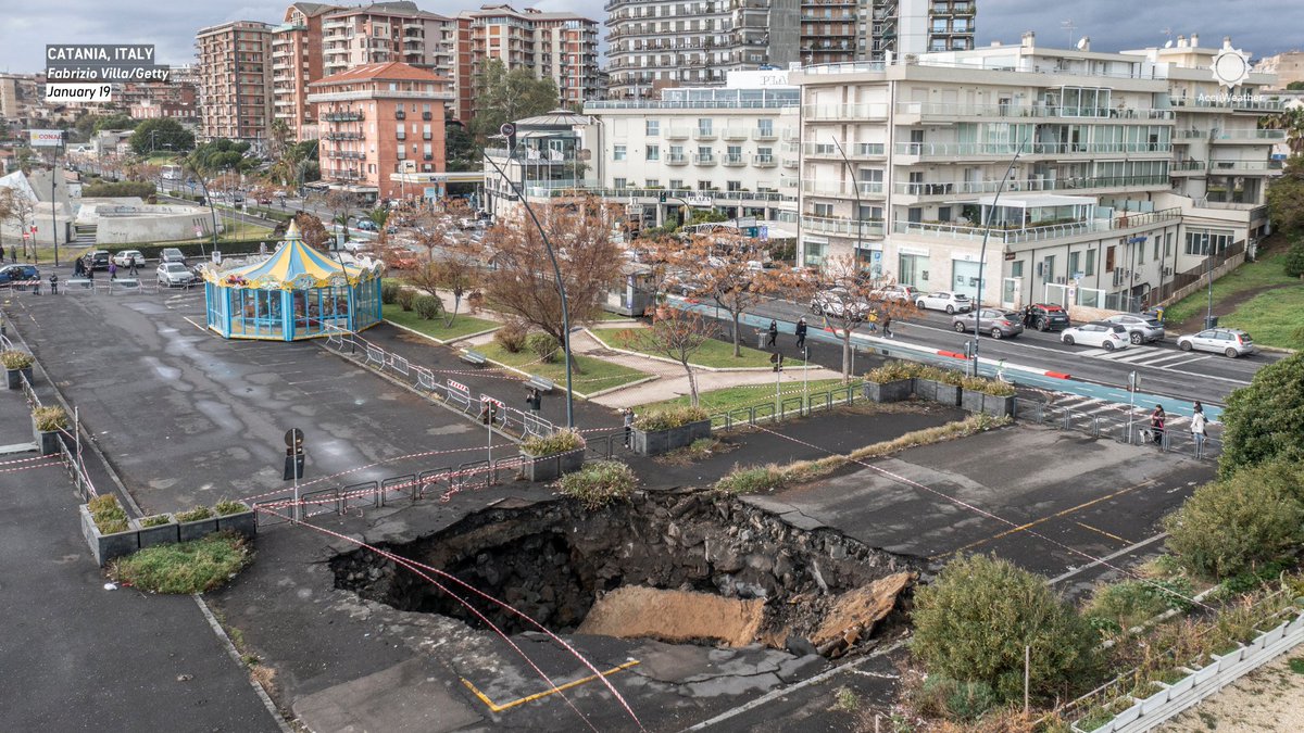 Following relentless rain, a large sinkhole opened up in Catania, Sicily – just meters from moving traffic. pic.twitter.com/XQv9YA78NH