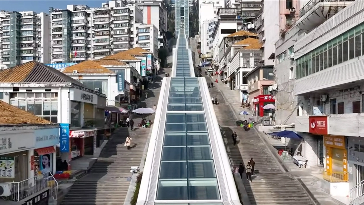Στην πόλη Τσονγκκίνγκ, στη δυτική Κίνα, τέθηκε σε λειτουργία το μεγαλύτερο σε μήκος υπαίθριο σύστημα κυλιόμενων σκαλών παγκοσμίως, καθώς εκτείνονται σε απόσταση σχεδόν ενός χιλιομέτρου, καλύπτοντας υψομετρική διαφορά που ξεπερνά τα 248 μέτρα.