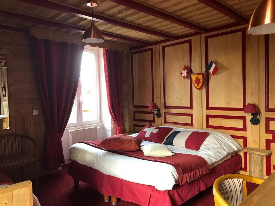 Χτισμένο στο ρουστίκ στυλ που είναι τόσο διαδεδομένο σε αυτό το μέρος της Ευρώπης, το μικρό οικογενειακό ξενοδοχείο Hotel Arbez Franco Suisse – που ονομάζεται επίσης L’Arbézie – έχει την ιδιαιτερότητα να βρίσκεται ακριβώς πάνω σε ένα διεθνές σύνορο.