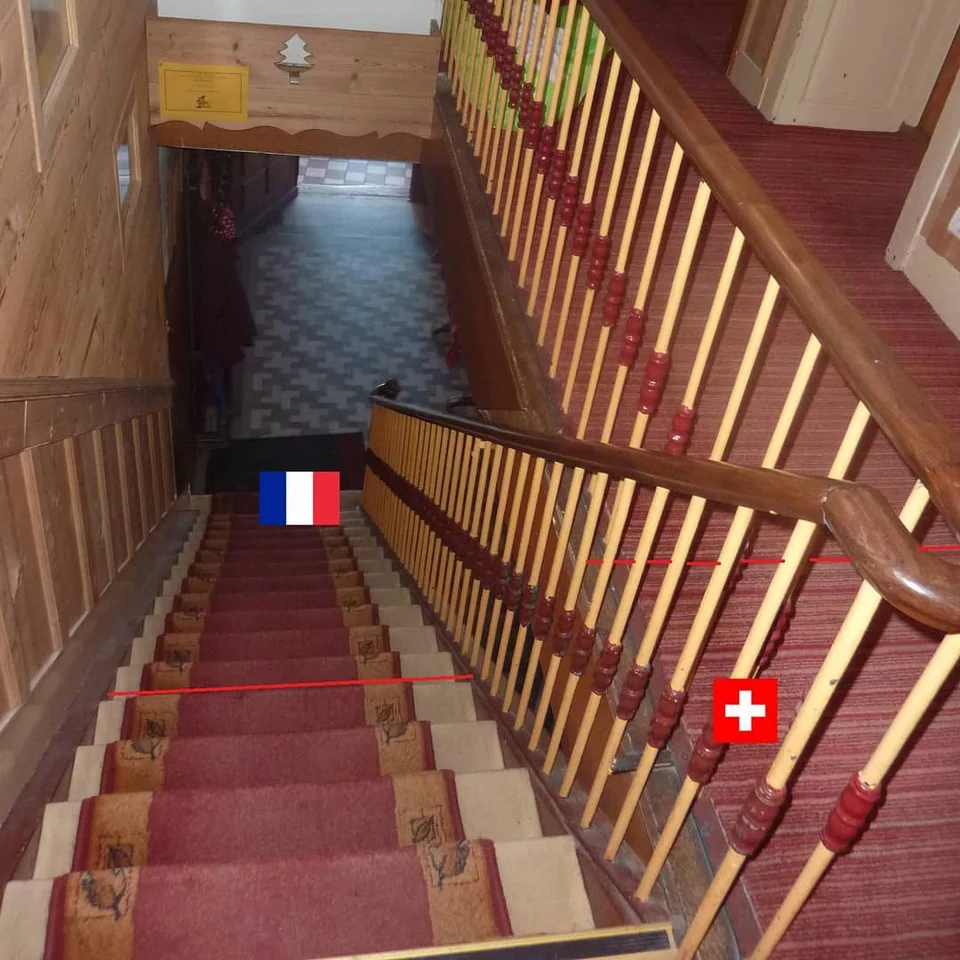 Το αποτέλεσμα είναι πως περίπου το μισό ξενοδοχείο βρίσκεται στη Γαλλία και το άλλο μισό στην Ελβετία, με τα διεθνή σύνορα να διχοτομούν το εστιατόριο και αρκετά από τα δωμάτια.