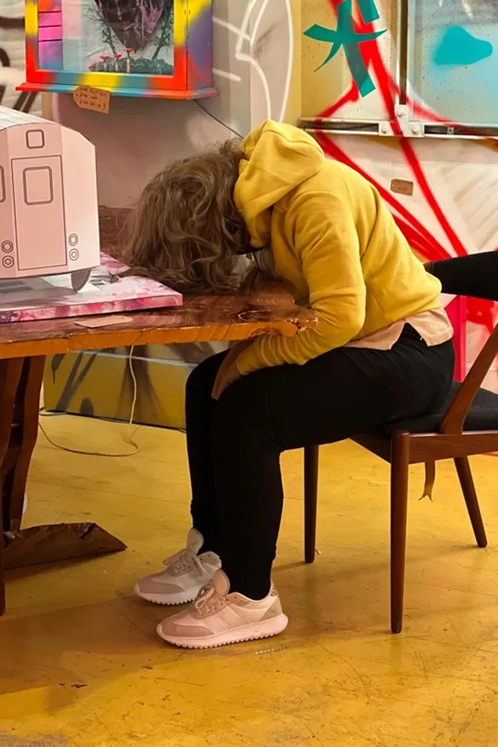 Όμως το «άτομο» αποδείχθηκε ότι ήταν η «Kristina», ένα γλυπτό που φιλοτέχνησε φέτος ο καλλιτέχνης Μαρκ Τζένκινς και απεικονίζει μια γυναίκα που κάθεται σε μια καρέκλα λιπόθυμη με το κεφάλι της πάνω σε ένα γραφείο.