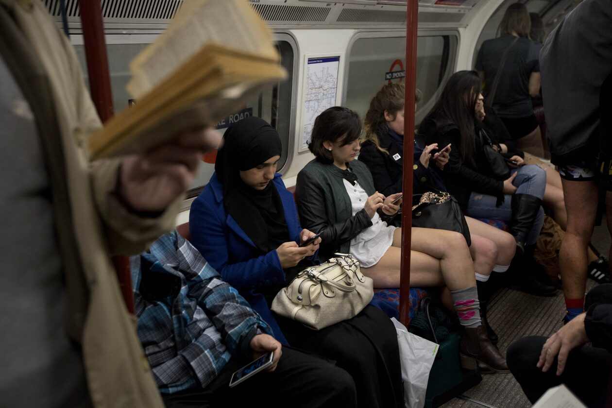 Γυναίκες και άντρες όλων των ηλικιών και των σωματότυπων μπήκαν στα βαγόνια από τη μέση και πάνω ντυμένοι όμως από τη μέση και κάτω φορούσαν μόνο το εσώρουχο, τις κάλτσες και τα παπούτσια τους.