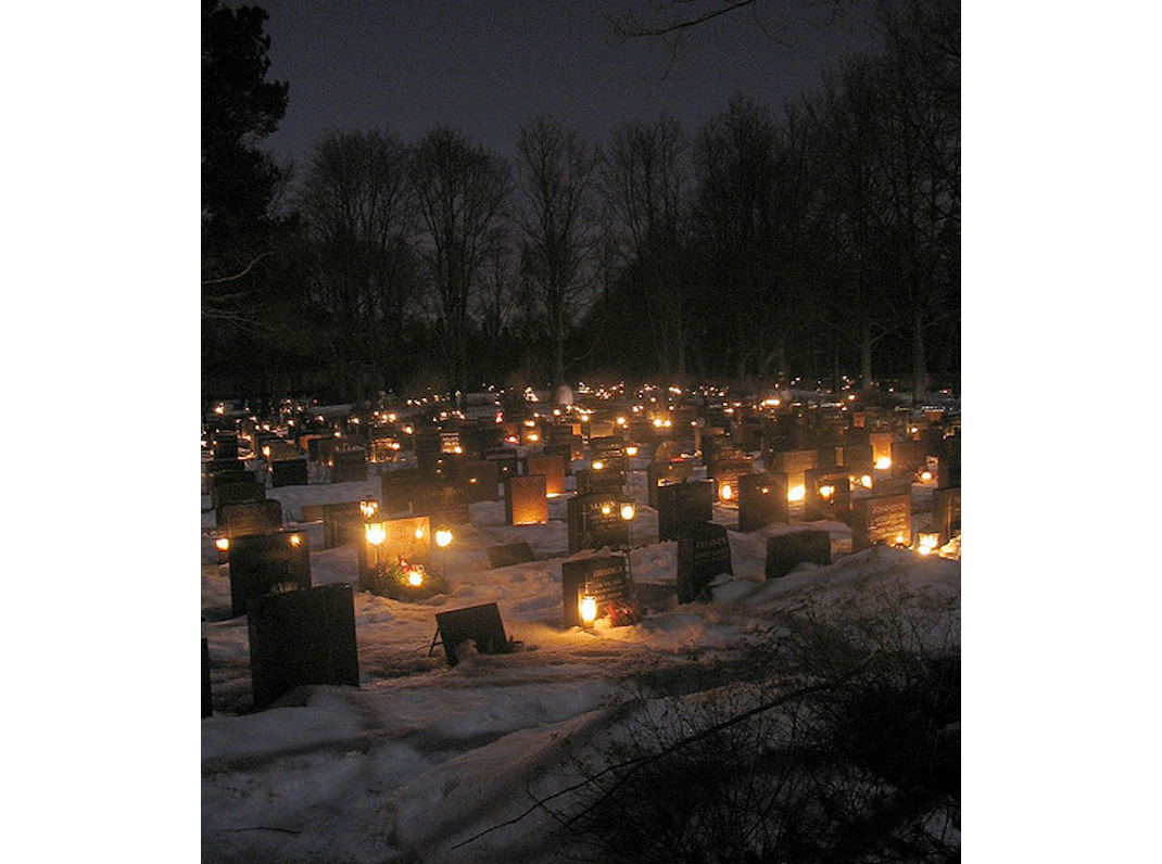 Ωστόσο, στην περίπτωση της Φινλανδίας η διακόσμηση των κοιμητηρίων γίνεται μόνο με κεριά ή λουλούδια, δημιουργώντας ένα εξίσου εντυπωσιακό και μυσταγωγικό θέαμα.