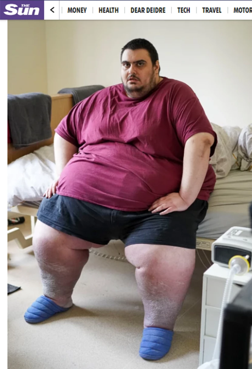 Στην Sun και ανέφερε ότι η εμμονή στο φαγητό οφείλεται στην κατάθλιψη και το παιδικό τραύμα που αποκόμισε, γιατί έχασε τον πατέρα του σε ηλικία 3 ετών. Όπως είπε, ξεκίνησε να παραγγέλνει και να τρώει φαγητό απ΄έξω, αρχικά κρυφά όταν έλειπε η μητέρα του, όμως μεγαλώνοντας ξεκίνησε να εθίζεται.
