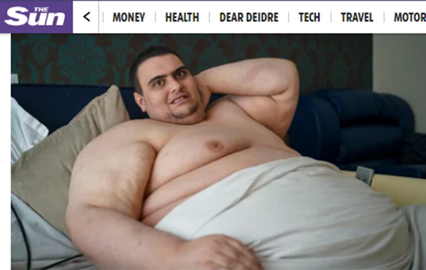 Στην Sun και ανέφερε ότι η εμμονή στο φαγητό οφείλεται στην κατάθλιψη και το παιδικό τραύμα που αποκόμισε, γιατί έχασε τον πατέρα του σε ηλικία 3 ετών. Όπως είπε, ξεκίνησε να παραγγέλνει και να τρώει φαγητό απ΄έξω, αρχικά κρυφά όταν έλειπε η μητέρα του, όμως μεγαλώνοντας ξεκίνησε να εθίζεται.