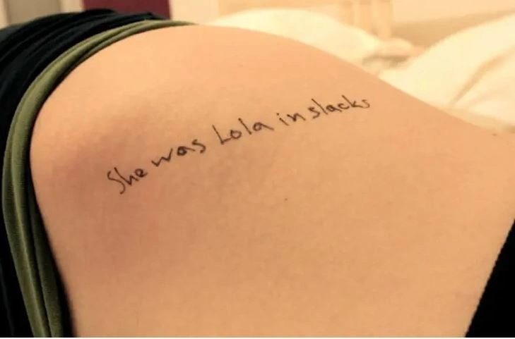 Η δεύτερη εικόνα δείχνει ένα απόσπασμα γραμμένο στο πόδι μιας γυναίκας:«Ήταν η Λο, απλά Λο, το πρωί…», ανέφερε μεταξύ άλλων.